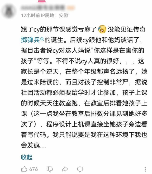 为什么程磨真金不怕火会这么说呢? 因为孩子之是以失控,在于他适度欲极强的母亲。 一些中科大的学生在网上理解了一些细节: 从他考上少年班那天起,母亲就寸步不离地陪读。